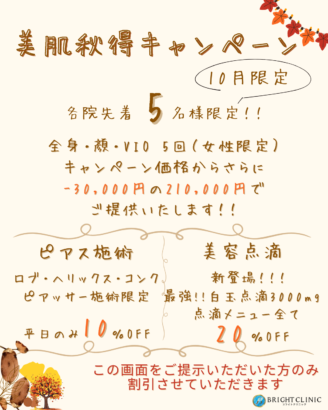 ※美肌秋得キャンペーンをご希望の方は、上記の画像をご提示ください。